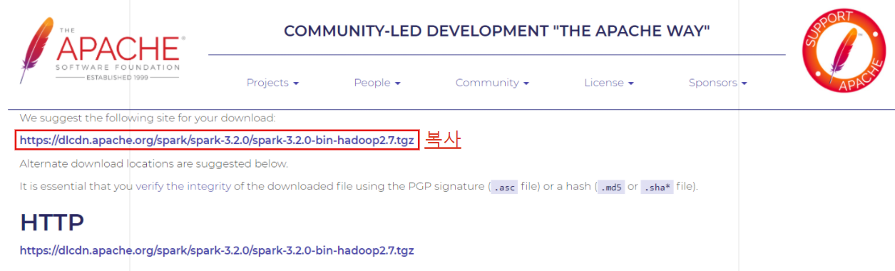 - [Spark 홈페이지]에 들어가 버전을 선택하고 설치하자.