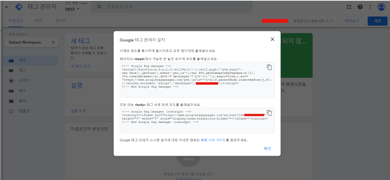 GA 추적 코드가 있더라도 추가 가능하다. 다만 보고자하는 계정은 달라야 한다. 그러니 미리 GTM을 사용할 연습용 계정을 만들어 두도록 하자.